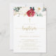 This classic gold burgundy white floral baptism invitation is perfect for a rustic baby baptism or christening. The design features watercolor white, burgundy and gold flowers and berries with green foliage arranged into elegant bouquets.