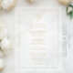 Now available in clear or frosted acrylic, this design takes on a striking new dimension, offering a modern, elegant finish that enhances its timeless appeal. The versatile acrylic adds a luminous touch, perfect for making your invitations as unforgettable as the moments they celebrate. Choose from either 15 or 40 mil thickness.