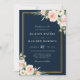 classic gold frame navy & blush floral wedding invitation