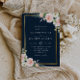 This design combines the popular pink blush theme with the classy gold frame and navy blue background. The hand painted flowers mix well with the white text and pink back. You can choose the paper of your choice and also customize other features of this template such as text, wording and color.
