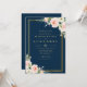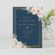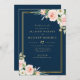 Classic Gold Frame Pink Blush Floral Navy Wedding Invitation
