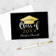 Celebrate in style with this stunning graduation thank you card featuring a faux gold metallic graduation cap on a rich black background. White script and gold accents frame your class year and personalized name for a luxe, timeless look. Customize the name and year for a card that shines as bright as your accomplishment.