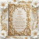 The Classic Gold Ornate Floral Motifs with Modern Typography Wedding Invitation is a refined fusion of heritage elegance and contemporary design, created for couples who appreciate timeless beauty presented through a modern lens. This invitation balances richly detailed decoration with intrinsic artwork resulting in a sophisticated aesthetics that feels both classic and current. The design features floral embroidery inspired frame that are intricately detailed, featuring graceful leaves, curling vines, and symmetrical botanical elements that evoke luxury and celebration. The text uses modern typography that can be easily personalized.