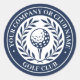 Create your own personalized golf stickers! A classic design featuring a victory laurel wreath, framing a ball and tee. This editable template can be customized for a golf club, country club, company name, team player, golf club member or individual golfer. Perfect for commemorating special days, corporate events, competitions, tournaments and more. Printed colours: dark midnight blue and white. Shop the collection for more popular golf gift ideas for sale online!
