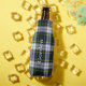 Hold that bottle or can in style with this traditional plaid pattern cooler, done in the classic Scottish blue, green, black, yellow, and white Gordon Dress Tartan design. Personalize the bold white text running up the front of the cooler. Great gift idea.