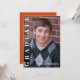 Celebrate your graduate with this elegant graduation invitation featuring bold orange school colors and a classic laurel leaf design. The graduate photo template allows you to showcase their photo in a simple, minimalist style, making it perfect for any high school or college grad. Highlight the Class of [Year] with this timeless and sophisticated grad party invite. Personalize it today to create a memorable keepsake for your graduate!