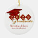 This keepsake ornament features red and gold cap and tassel on diamond shields with your graduating year, diploma, name and school. Makes a great gift this holiday season. Easy to personalize with custom options.