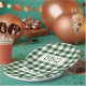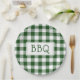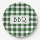 Get ready for your barbecue party with paper plates featuring a classic dark green and white buffalo plaid with the letters BBQ in a white rectangle in the centre.