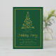 Celebrate the season in style with this holiday party invitation featuring a traditional green background accented by a gold foil double border and a hand-drawn Christmas tree. “Holiday Party” is displayed in matching gold foil lettering, giving the design a warm and refined touch. The green and gold foil colour palette creates an elegant and festive look, ideal for family gatherings, Christmas dinners, or business holiday parties.