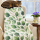 This cozy eucalyptus leaf print fleece blanket offers a soft texture and provides the perfect level of warmth. It is particularly comforting to have readily available near the sofa, allowing family members to use it as needed to stay warm while watching television. The blanket showcases a watercolor illustration of muted green leaves on a white background. Furthermore, this fleece blanket can be used on your bed, placed on top to display the attractive leaf print. (AI image by Susang6)