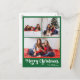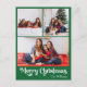 Classic Green Merry Christmas Vertical 3 Photo Holiday Postcard