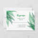 Des feuilles de palmiers vert vif mettent l'accent sur ce mariage RSVP sur un arrière - plan blanc simple donnant à cette invitation une atmosphère tropicale tout en embrassant la nouvelle tendance mariage verdoyante, le rendant parfait pour la destination, l'été, la piscine ou mariage sur la plage.