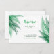 Bright green palm leaves accent this wedding RSVP on a simple white background giving this invitation a tropical feel while embracing the new greenery wedding trend, making it perfect for the destination, summertime, poolside or beach wedding.