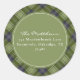 Classic green plaid round return address label, customizable with your family name and address. A timeless and festive touch for holiday cards, gifts, and mail.