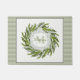 Classic Greenery Wreath Monogram Sage Stripes Doormat