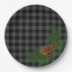 Classic grey and black plaid pine cone paper plate