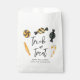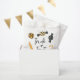 Cute Halloween design features watercolor illustrations of wrapped candies surrounding "trick or treat" in hand sketched script lettering. Personalize with your choice of text beneath.