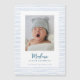 Nestled within an organically hand-drawn blue striped border, your precious newborn's photo takes centre stage, surrounded by the warmth of tradition and the promise of new beginnings. The soft, gentle hues of the blue stripes exude a sense of calm and growth, symbolizing the fresh chapter in your family's story.