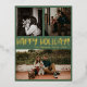 Classic Happy Holidays Green Three Photo Gold Foil Holiday Postcard