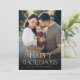 Classic Happy Holidays Text Floral Back | Photo Holiday Card