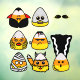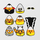 All the classic Hollywood monsters -- as cute candy corn! There's Dracula, the Phantom of the Opera, the Invisible Man, the Creature from the Black Lagoon, the Wolfman, and the Bride of Frankenstein.