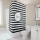 A classic black and white horizontal stripes shower curtain. Personalize this trendy pattern by adding your name and monogrammed initial. This contemporary monogram design is part of the Black Stripes Bathroom Decor Summer Colour Collection.