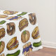 Tablecloth print features an original marker illustration of a row of delicious classic Jewish deli foods, including bagels, pickles, knishes, blintzes and reuben sandwiches. Great for your favourite foodie.