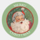 On this fun Holiday sticker is a wonderful vintage image of Santa Claus. You can almost hear the "Ho ho ho's"! The image is framed in red, and placed on a Holiday green border that says "MERRY CHRISTMAS" in white. The text is customizable, so you may change it if you'd like. This sticker gives a wonderful retro look to your Holiday correspondence.