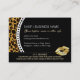 This stylish business loyalty card features 10 lip print punches, with reward after the 9th purchase. This card is set up for free lip colour of customer's choice, but can be easily edited with your own rewards program info. Perfect for a cosmetics business, makeup direct salesperson, distributor, boutique or shop. Chic leopard print on black with golden lip prints. {{Click "CUSTOMIZE" to change text colours, fonts and for more editing options}}
