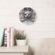 A photographic image of an architectural relief of a classic Lion's Head is featured on this truly unique grey and white acrylic wall clock. These grey wall clocks are a true conversation piece to add a classic, traditional or eclectic feel to any room and home decor. Customize with your Name or Family's surname for a truly personalized touch of historical detail.