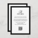 These elegant, old money style wedding guest detail cards feature a dramatic black border and a black and white text design. There is a mix of classic black text and modern calligraphy for a classy and minimalist design perfect for your timeless, formal wedding. You can use these cards for driving directions, reception or transportation information, hotel or accommodations information, and any other wedding details you need your guests to know. There is a scannable QR code that your guests can use to visit your wedding website, for more details or to RSVP.