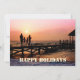 Elegant Christmas Holidays custom photo card. You can replace the photo on the front with your own custom photo. The back of the card features an illustration of a classic winter landscape with festively lit cottage and Santa flying through the night sky.