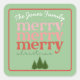 Add a festive touch to holiday gifts with this square label. The label features a light green background with text "merry merry christmas" along with a pine tree graphic. The label can be personalized with your family name.