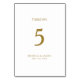 This classic minimalist gold table number is great for a simple and elegant wedding. The gold vintage typography gives it a classy formal touch. Keep it as is, or choose to personalize it with artwork or graphics of your choice.