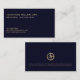 Classic Minimalist Navy Blue Gold Logo Business Card