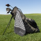 This design features a classic black and white houndstooth pattern. Combined with your own personalized text, this composition creates a modern chic and unique golf towel.