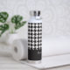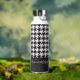 This design features a classic black and white houndstooth pattern. Combined with your own personalized text, this composition creates a modern chic and unique water bottle.