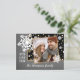 Unique, classic, trendy, pretty and decorative Holiday card. Cute WITH LOVE FROM text and room to customize or personalize with a photo and names (or family name) of your choice on cute fun scattered snowflakes pattern design on a chic black and grey background. And a customizable season greeting poem on the backside of the card.