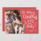 Classic Modern Merry Christmas 3 Photo Rustic Red Holiday Card