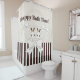 The product design features bunny twins and off-white ribbons. This adorable animal cartoon with stripes makes a cute, classic modern, and unique shower curtain with personalized text for kids