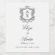 Black and White Monogram Crest, wedding wine label. Vintage inspired Regency-Era baroque art monogram crest. Features, an elegant clean black and white typography design.