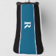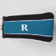 This stylish golf club putter head cover features a classic monogram and blocks of colour. A perfect gift for dad or any man who golfs. Black, blue, and white with white text, you can edit the monogram to personalize it by using the editing tool in the listing. It's a stylish, modern, and minimalist gift for a golfer.