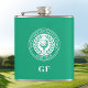 Create your own golf flask with monogrammed initials. A classic design featuring a victory laurel wreath, framing a golf ball and tee. This editable template can be customized for a golf club, country club, company name, team player, golf club member or individual golfer. Perfect for commemorating special days, corporate events, competitions, tournaments and more. Printed colours: green and white. Shop the collection for more popular golf gift ideas for sale online!