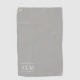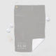 A simple monogram is featured on this grey golf towel. Easily update the text with your initials, name or company name for a personalized golf towel great for tournament and tradeshow give aways.
