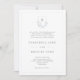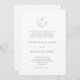 A simple and timeless wedding invitation featuring a crest adorned with line drawn jasmine flowers in subtle slate blue with your married name initial in the centre. The layout is set to fit in traditional wording where both sets of parents are hosts.