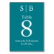 Classic monogram teal wedding table number for a wedding reception, rehearsal dinner, wedding and bridal showers, or anniversary dinners.