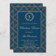 Classic Monogram Wreath Blue Plaid Christmas Party Invitation