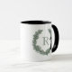 Sip in style with our Classic Monogram Wreath Crest Ceramic Mug, featuring a timeless holiday wreath tied with a black bow and accented by your customizable serif monogram. This elegant crest design brings sophistication and personalization to your everyday coffee or tea ritual, making it a festive yet versatile addition to your kitchen.