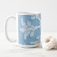 This is a classic mug. It has a snow crytal pattern design.