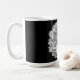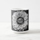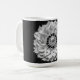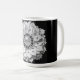 An imaginary gemstone flower design composed of a diamond bud surrounded by white petals covers this mug.